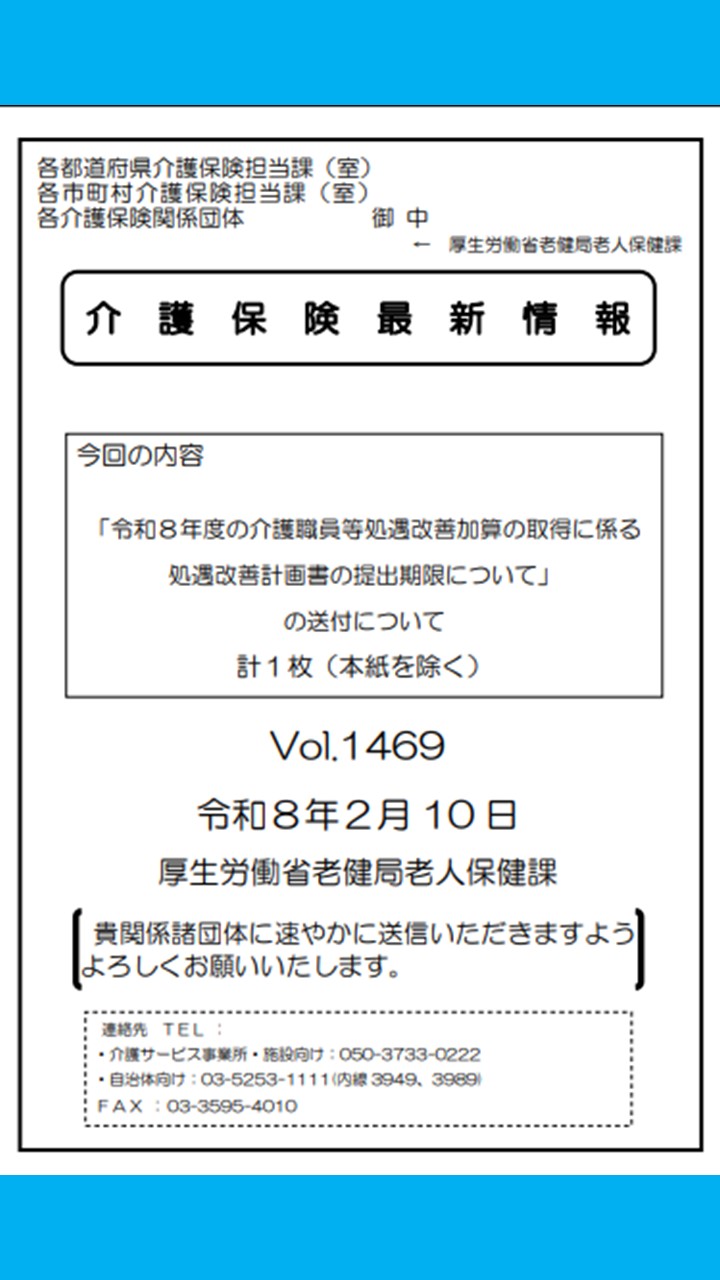 令和8年度の処遇改善加算計画書の提出日が公表された。